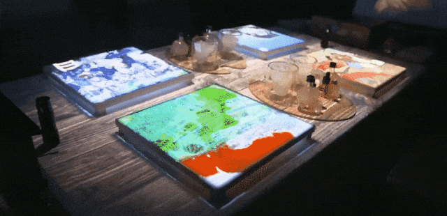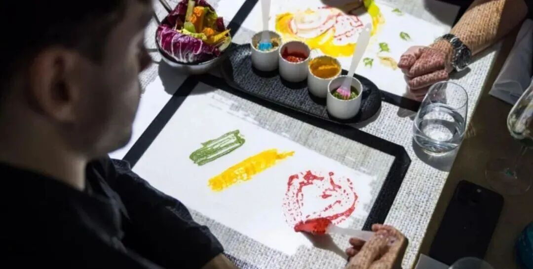 在7 Paintings的波洛克环节,食客可以亲手泼洒酱料,创作自己的抽象画作;在班克西环节,使用“魔法喷漆罐”在投影画布上创作涂鸦。